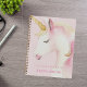 Ein gürteliges Skizzenbuch für Schule, Journalismus oder Tagebuch. Ein weicher, rosafarbener Hintergrund, mit einem niedlich rosa, wasserfarbenen Einhorn dekoriert. Personalisieren und einen Namen hinzufügen.