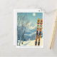 Hallo aus den schneebedeckten Bergen Ski Apache, New Mexico, Sierra Blanca, USA! Wir hoffen, dass Sie einen wunderschönen Skiurlaub haben. Diese Postkarte zeigt eine wunderschöne, blau-graue Berglandschaft mit Retro-Skischulen in orangefarbenem Stammesmuster. Alle Textsätze können an Ihren Anzug angepasst werden!