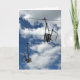 Deux chaises de remontées mécaniques vides sont accrochées à leurs câbles de remontées mécaniques sur cette photo saisissante. Sans coureur, le téléski ressemble à un diagramme linéaire noir devant une vue étendue du ciel bleu et des nuages blancs bouffants. La chaise supérieure droite monte et la chaise inférieure gauche descend. Photo numérique, couleur. Copyright © 2010 Claire E. Skinner. Tous droits réservés.
