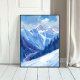 Ski Mountain | Blue Watercolor Mountain Range Poster