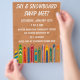 Promote your ski themed business or community event with a custom flyer. This eye-catching flyer features my illustrations of colorful vintage skis making it perfect for skiing themed events. The illustrations are set against a light brown background that has a horizontal stripe pattern mimicking the look of a ski lodge's wood siding. All of your event details are in bold white lettering.