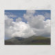 Postkarte mit Foto von Skiddaw und Skiddaw Kleiner Mann fells / Berge mit weißen Wolken und blauem Himmel oben im englischen Lake District.