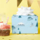 Skier auf Blau mit Schneeflocken Geschenkpapier