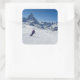 Skifahren mit Matterhorn in Zermatt, Schweiz Quadratischer Aufkleber