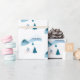 Blauer Abfahrtsläufer mit Bergen auf weißem Grund. Die Hintergrundfarbe kann geändert werden.
