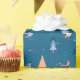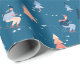 Skifahrer in Schneeflocken auf blauem Wrapping Pap Geschenkpapier