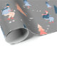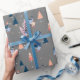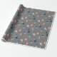 Skifahrer in Schneeflocken auf Grau Geschenkpapier