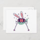 Skihasen mit Skistöcken und Schal Postkarte