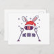 Skiing Santa Rabbit with Santa Hat and ski poles S Postkarte