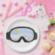 Skiggles Bergansicht Illustration. Skier-Brille-Illustration mit einer Landschaft Bergreflexion. Alpin Ski Brille Illustration. Skifahrer, Schneeschuhwanderer, Skischuhloipen. Geschenke für Skifahrer und Snowboarder. Die Skikögel entwerfen Wohngestaltung, Party, Schreibwaren und Geschenke.