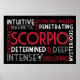 Mit Wörtern, die die Person beschreiben, die unter dem astrologischen Zeichen des Skorpios im Diakon geboren ist.