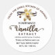 Das hausgemachte Vanilla Extract Round Label mit personalisierten Details über Inhaltsstoff, Herstellungsdatum, Herstellername, elegant in Script-Kalligraphie geschrieben "Aus der kleinen Küche des "Herstellernamen" zur Förderung lokaler und Zuhause-basierter Produkte. Sie können die Felder nach Ihren Bedürfnissen bearbeiten.
