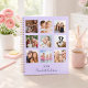 Machen Sie Ihr eigenes Foto als Geschenk für Ihre Mutter, Ehefrau oder sich selbst. Nutzen Sie vier, neun Ihrer Lieblings-Fotos Ihrer Familie, Freunden, Traumreiseziel oder Haustier! Personalisieren und fügen Sie einen Namen und ein Jahr. Der Name ist mit einem modernen handgeschriebenen Stilskript geschrieben. Violett, lavenderfarbener Hintergrund.