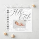 Hallo wenig ein modernes 1 Foto Geburtsankündigung. Eleganter Wunderschrift-Schrift-Design-Text, moderne gedruckte Foto-Effekt. Schwarz-weißes monochrome Polka Bot Backer Design.