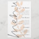 Ein günstiges Preis-Leistungs-Verhältnis von 5,5" x 8,5", auf einem eleganten 110 lb LINEN Stock - für ein luxuriöses Ambiente zu einem guten Preis-Leistungs-Verhältnis, perfekt für Menüs, Einladungen und Programme etc. Diese Alternative zur Budgetgröße ist auch bei anderen Papiervorschlägen verfügbar. Der SEMI-GLOSS 110 lb Kartenvorrat ist etwa so dick wie eine Postkarte, funktioniert also auch bei Einladungen gut. Das FELT 100 lbs Papier ist bufffarben, NICHT weiß, fügt also eine rustikale Touch hinzu. Das Papier MATTE 80lbs ist hell weiß, für knackigen Druck, ideal für Ihre Menüs und Programme, während das SATIN 80lbs Papier dünn und leicht, ideal für Gehäuse. BITTE BEACHTEN SIE, DASS DIE OPTIONALEN ENVELOPES ETWAS GRÖSSER SIND, CA. 6,75" x 9". Dieses moderne Design hat Menu in elegantem Set-Grauskript, das die links Seite hochläuft und die Erholung des Textes auf der rechten Seite ausgerichtet ist, die Sie leicht personalisieren können, sowie Ihre Namen und Ihr Hochzeitdatum auf der Rückseite. Künstlerische Aquarellfarben-Blätter in Pfirsich sind beidseitig im Hintergrund getönt.