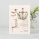 Dankeschön mit dieser schicken Taufkarte mit eleganter Schriftzeichen-Kalligraphie und einem rustikalen Kreuz-Design, das von weicher Vegetation betont wird. Die harmonische Kombination aus Erdtönen und zarter Typografie schafft einen warmen und zeitlosen Look. Ideal, um den Lieben, die diesen besondere Anlass feierten, Ihre Dankbarkeit auszusprechen. Personalisieren Sie die Nachricht, um sie einzigartig zu machen.