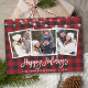 Rustikales Wood Brush Script 3 Foto Family Happy Holidays Card mit String Lights - Red Buffalo Kariert