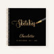 Ein schicker schwarzer Hintergrund. Mit dem Text: Skizzen und mit einem Pinsel verziert. Personalisieren und fügen Sie einen Namen und Text (oder löschen) hinzu