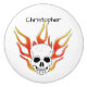 Add a bit of style to your cabinets and furniture in any room. This decorative ceramic knob with a skull design will do just that. You can customise this knob with any text. Should you require any help with customising then contact us through the message link on this page. Ceramic knob for cabinets and furniture with a fantasy art skull and flames design.
