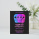 Dieses lustige Schädel Halloween Geburtstagsparty Budget Einladung für Mädchen mit einer gotisch blauen rosa lila schwarzen kreativen Design. Drei Schädel mit googly Augen, trendig, cool, einzigartig, beängstigend, spukhaft, modern Vintag inspiriert. Bildrecht Marg Seregelyi Fotografie.