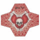 Dieser Fußball ist rot mit abstrakten, weißen Linien in einem miteinander verflochtenen Muster, mit einem roten Lese aus weißen Knochen mit einem Schädel in der Mitte des Herzens. Passen Sie Ihren Text mit der Vorlage an.