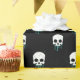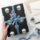 Hier haben wir ein phantastisches Verpackungspapier, das einen weißen Schädel mit aquamarin tropfender Farbe auf schwarzem Hintergrund hat. Dieses Papier ist in mehreren Größen erhältlich und passt zu anderen Papiertüten. Das ist sicher eine perfekte Ergänzung zu Ihren Geschenken in dieser Halloween-Saison.