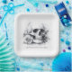 Papier Teller mit einem Aquarellbild eines Schädels, umgeben von Rose, und Ihren Namen oder anderen benutzerdefinierten Text unten.