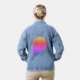 If you are looking for a cool denim jacket or some cool skull artwork , this abstract skull print denim jacket is the best of both worlds. This skull print blue jean jacket features an abstract line art style skull in pretty sunset shades of purple , pink, orange , red, and yellow . Original ink and pencil artwork by The Gifted Grackle.