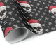 Das perfekte Alt-Urlaubspapier mit einem Schädel mit detailliertem Weihnachtsmannmütze-Set auf schwarzem Hintergrund mit Schneeflocken. Sehen Sie die Koordinierungsaufgaben in unserem Shop, Verzauberte Finch