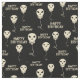 Dieser gemusterte Stoff ist perfekt für diejenigen, die einen gruseligen Stil bevorzugen. Es zeigt meine Illustrationen eines Schädels geformten Ballons zusammen mit der Meldung "Happy Birthday" in Skelettschrift. Der Text und die Grafik sind in Elfenbeinfarbe vor schwarzem Hintergrund.