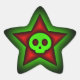 Dieser einzigartige Schädel-Sternenaufkleber hat ein grün leuchtendes Schädel-Set in der Mitte eines rubinroten Sterns, der auch glüht und selbst Set in einem schwarzen Sternenaufkleber ist. Ein sehr cool aussehendes Design, das sicher als ein halbes Geschenk oder Dekoration gefallen wird, oder für diejenigen, die gute Mode mögen.