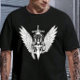 Mit unserem Skull Wings Premium T - Shirt können Sie edgy Stile einsetzen. Aus 100% gekämmter Baumwolle für ein weiches, erstklassiges Gefühl. Mit einem auffallenden Design eines Schädels mit Flügeln, Schwert und Nachtsichtbrille. Ideal für diejenigen, die Qualität und einzigartige, mutige Designs bevorzugen. Jetzt bei TeeOxe einkaufen.
