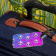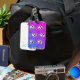 "Skully Pop Kawaii" Dieses spielerische und edgy Design vereint Pastelltöne in lila, rosa und blauen Farbtönen in einem Gradientenschachbretthintergrund. Die Skulpturen im Cartoon sind mit rosa Bögen geschmückt und verleihen ihnen eine niedliche, aber punk-inspirierte Drehung. Die Schädel sind fett rosa Herzen und umrissen lila Sterne, die ein lustiges, skurriles Gefühl verleihen. Die Gesamtästhetik verbindet Elemente der Kawaii- und der emo-Pop-Kultur.