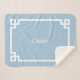 Sky Blue and White Greek Key Monogram Sherpadecke