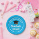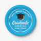 Diese moderne, blau-weiße, maßgeschneiderte Papierplatte zeigt klassische Typografie Ihres High School- oder Uni-Namens für die Klasse von 2025. Passen Sie mit Ihrem geschlossen Jahr unter der schicken handgeschriebenen Drehbuch und schwarzen Graduiertenkappe für ein großartiges personalisiertes Graduiertendekor.