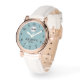 Fresh, elegant, and effortlessly stylish — this sky blue and gold personalized watch brings a touch of serenity and sophistication to your wrist. The soft pastel blue dial with black numerals and a refined monogram crest exudes calm confidence, while the rose gold bezel and white crocodile-textured leather strap create a timelessly chic contrast.