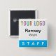 Personalisieren Sie unser viereckiges Button-Backteam-Abzeichen einfach mit Ihrem Logo, Personalnamen oder anderen benutzerdefinierten Text. Es hängt mit einem sicheren Button zurück. Entworfen in Himmelblau und anderen Farben (alle Farben sind anpassbar). Unsere quadratischen Tasten sind 2 Zoll x 2 Zoll. Hergestellt in den USA. Keine Mindestbestellmenge und keine Einrichtungsgebühr.