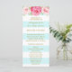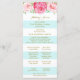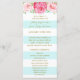 Maßgeschneidertes Hochzeitsprogramm in hellpastellfarbenen türkisfarbenen aquamarinen Himmelblau-Weiß Streifen Muster mit Vintag rosa Aquarellfarben Blume. Passen Sie diese Reihenfolge der Zeremonie-Karten mit Ihrem eigenen Text an.