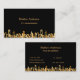 Schwarzer Hintergrund mit vergoldeten Imitaten in der Silhouette der Stadt. Personalisieren und fügen Sie Ihren Firmennamen und einen Text auf der Vorderseite. Goldene Buchstaben Zurück: Vorlagen für Ihren Namen, Titel, Telefonnummer, E-Mail und Website-Adresse.