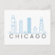 Postkarte mit einer modernen, grafischen Chicagoer Skyline und dem Text "Chicago" unten.