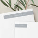 Elegante Wraparound-Rücksendeadressen-Aufkleber sind so konzipiert, dass sie sich mit unserer Hochzeitskollektion in Chiffon abstimmen. Das Design zeigt Ihre Namen auf der Rückseite und die Rücksendeadresse auf der vorderen Umhüllung, auf einem soliden hellblau-grauen Hintergrund.