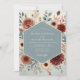 Embrace an earthy and artistic aesthetic for your special day. This design showcases a beautiful arrangement of painterly botanicals in a warm, autumnal palette. Rich tones of terracotta and rust are elegantly contrasted with dusty slate blue foliage. Delicate roses and anemones create a romantic, bohemian atmosphere.