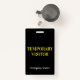 Dieses schlanke Abzeichen-Design beinhaltet die Meldung "TEMPORARY VISITOR", einen benutzerdefinierbaren Firmennamen oder eine andere benutzerdefinierte Nachricht. Ein solches Abzeichen könnte dazu verwendet werden, zu identifizieren, dass jemand am Arbeitsplatz oder in einem Unternehmen ein autorisierter Gast/Besucher ist. [~Z0000307]