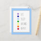 Charmantes minimalistisches Wellness-Postkartendesign mit einer einfachen 7-Chakra-Grafik und individualisierbarem "Eat. Schlafen. Guthaben an. Wiederholen." Nachricht und himmelblau Rahmen. Ideal für Yogalehrer, Massagetherapeuten und andere, die ganzheitliche Wellness und Meditation praktizieren.