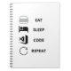Sie suchen ein nettes Codierungsnotebook für Sie? Sie sind Softwareentwickler, Programmierer oder Programmierer? Dann bekommen Sie dieses lustige Design mit lustigen Zitaten essen Schlafcode wiederholen