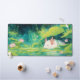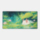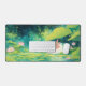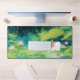 Bring a touch of serene aquatic charm to your workspace with this beautiful watercolor illustration of a sleeping white axolotl. This desk mat features a peaceful axolotl with soft pink gills, dreamily tucked beneath a broad green lily pad. The tranquil pond environment is rendered in soothing shades of green and teal, adorned with numerous small yellow-green lily pads and elegant pink lotus flowers blooming gracefully. Lush, dark green foliage frames the background, enhancing the natural, whimsical, and calming ambiance of the design. Perfect for nature lovers and fans of cute amphibians, this mat adds a peaceful and artistic flair to any desk. This desk mat offers versatile use for various other businesses, events, or situations.