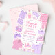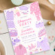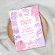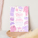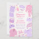 Invités Invitations à votre fête de sommeil avec notre Invitation d'anniversaire Sleepover. Design rose et violet avec pyjama, masques de sommeil, pantoufles, pizza, pop-corn, vernis à ongles, et des éléments de fête PJ plus amusants.