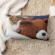 Ein niedliches Wurfkissen einer Katzenkatze, die mit einem Teddybär schläft.