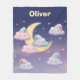 Diese personalisierte Fleecedecke weist pastellfarbene Wolken auf, die winzige Nachtkappen tragen und friedlich auf und um einen Halbmond ruhen. Umgeben von glühenden Sternen und einem sanften Gefälle von tiefer Blues, Purpur und Rosa, ist dieses ruhige Nachtleben perfekt für Kinderzimmer und Kinder.