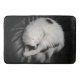 Liebhaber von Katzen werden dieses hübsche, schläfrige Kätzchen auf der Badematte lieben.